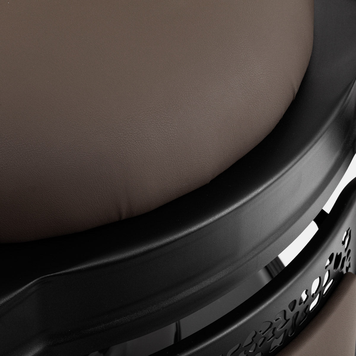 A comfortable foam-filled seat guarantees client comfort during a variety of services. The contoured backrest allows for a comfortable position, providing excellent back support, which is especially important during longer treatments. Equipping the chair with a full rotation mechanism makes work more effective and comfortable. Upholstered armrests placed at the right height ensure proper positioning of the client's shoulders, preventing the client from burying their head in their shoulders or hunching, which significantly facilitates precise treatments. The towel holder under the armrest significantly enhances work efficiency. The gap between the backrest and seat makes it easier to keep the salon clean, allowing for efficient hair removal from every corner of the chair and faster preparation of the workstation for the next clients.