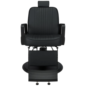 The Torp barber chair combines a classic retro design with functional ergonomics, ensuring maximum comfort for everyday barber work. Crafted with attention to detail, it offers both style and durability. Black upholstery with vertical stitching