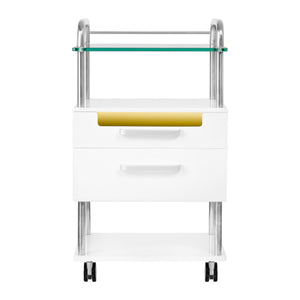 A high-quality podiatry helper is a functional cosmetic piece of furniture on wheels. Thanks to your mobility, you can transport it to other treatment rooms. The assistant has a glass worktop, drawers for tools, accessories and a shelf for a podiatry milling machine or other device. One drawer has a built-in UV-C lamp for better sterility of tools and accessories.