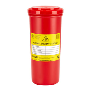 Designed to collect solid, hazardous medical waste, e.g. needles, intravenous cannulas, syringes, disposable gloves, etc.