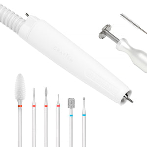 The practical accessories included in the set effectively facilitate the work. A precise head with an absorber and interchangeable filter bags ensure safe use, protecting against inhalation of harmful pathogens. The kit also includes a set of cutters, that will allow you to comfortably perform a variety of pedicure treatments, and a stand for them made of a special material, which makes it easy to clean. A variety of shapes, materials and gradations of cutters allow you to choose the right tool for the service being performed at the moment and the area being worked on. The included tools for cleaning the head and disassembling the cutters ensure easy maintenance of the device in good condition, making it easier to use.