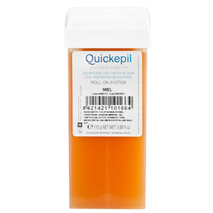 quickepil roll wax -on is specially designed for beauticians who are looking for great results. thanks to a special recipe, the roller stretches the wax into much thinner strips, which causes it to cool down almost immediately, minimizing baking. the product is then easily removed by strips. universal wax for all skin types, based on beeswax.