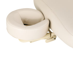 The ergonomic headrest with a face opening, included in the set, ensures a comfortable head position during treatments performed on the back, stomach and in the supine position. Adequate support increases client comfort even during longer procedures and promotes complete relaxation. The element has two-plane angle adjustment, which allows for precise adjustment to the type of treatment and individual needs.