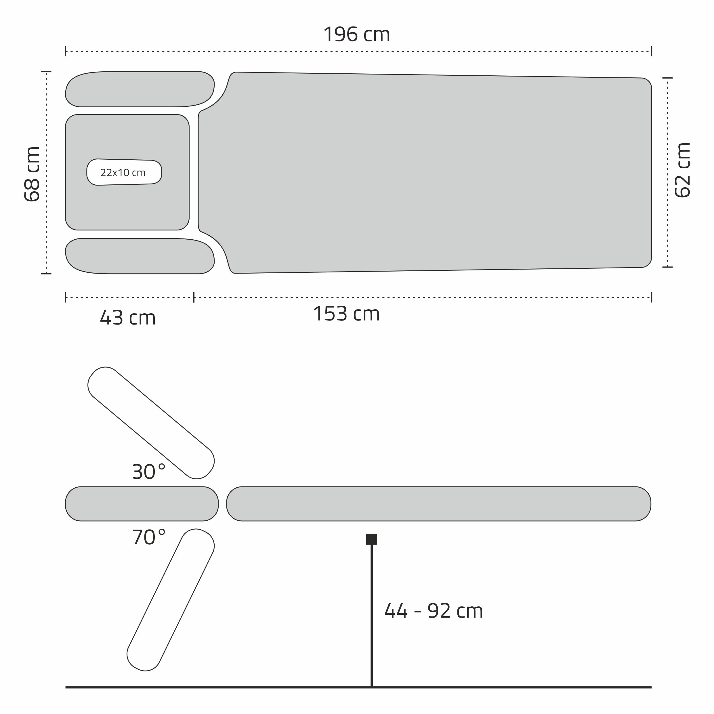 Agila 4 is a 4-section stationary table equipped with a control frame. The model is characterized by: modern design, ergonomic shape, high comfort of use, additional equipment in the form of a disposable roll paper holder. It perfectly fulfills its functions in physiotherapy offices as a rehabilitation table and in massage parlors as a very comfortable massage table.