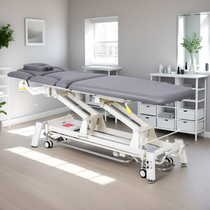 Két tanúsított elektromos működtetővel van felszerelve, amelyek sima, pontos és csendes magasságállítást biztosítanak 50 és 96 cm között. Ez kényelmet nyújt a terapeutának és a páciensnek egyaránt, lehetővé téve az asztal magasságának a munkatartáshoz való igazítását – védve a gerincét és növelve az ergonómiai hatékonyságot. Az alacsonyabb asztalpozíció megkönnyíti a páciensek biztonságos hozzáférését is.