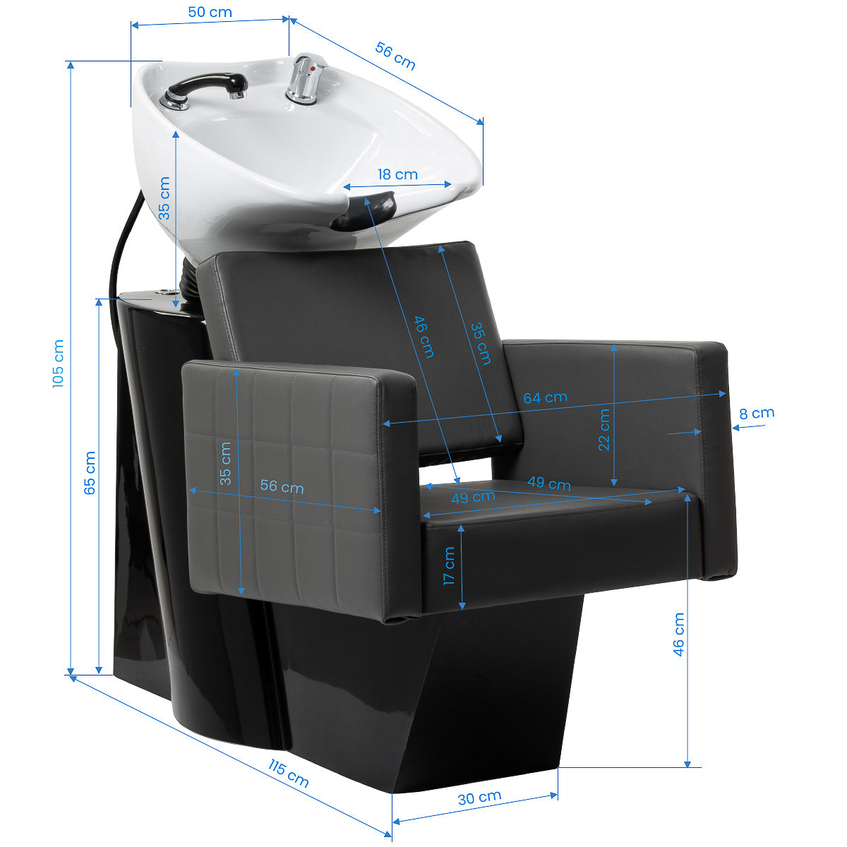 A stílusos, geometriai formájú székkel ellátott Ankara fodrászati hajmosó egység támogatja a hajápolási és hajmosási kezelések hatékony elvégzését. A fodrászszalonok funkcionális felszerelését szem előtt tartva tervezték. Az integrált kialakítás kényelmet biztosít mind a fodrász, mind az ügyfél számára, és az effektív oldalsó varrással ellátott gondos kivitelezés minden belső tér díszévé teszi.