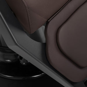 Az ergonomikus üléskialakítás és a gondosan profilozott háttámla biztosítja az ügyfél kényelmét még hosszabb kezelések során is. Az optimális magasságban elhelyezett kárpitozott karfák lehetővé teszik az ügyfél karjának megfelelő elhelyezését, megelőzve a nyak és a váll területén fellépő feszültséget. A teljes forgó mechanizmus növeli a munka rugalmasságát, és lehetővé teszi a szék könnyű beállítását bármilyen pozícióba.