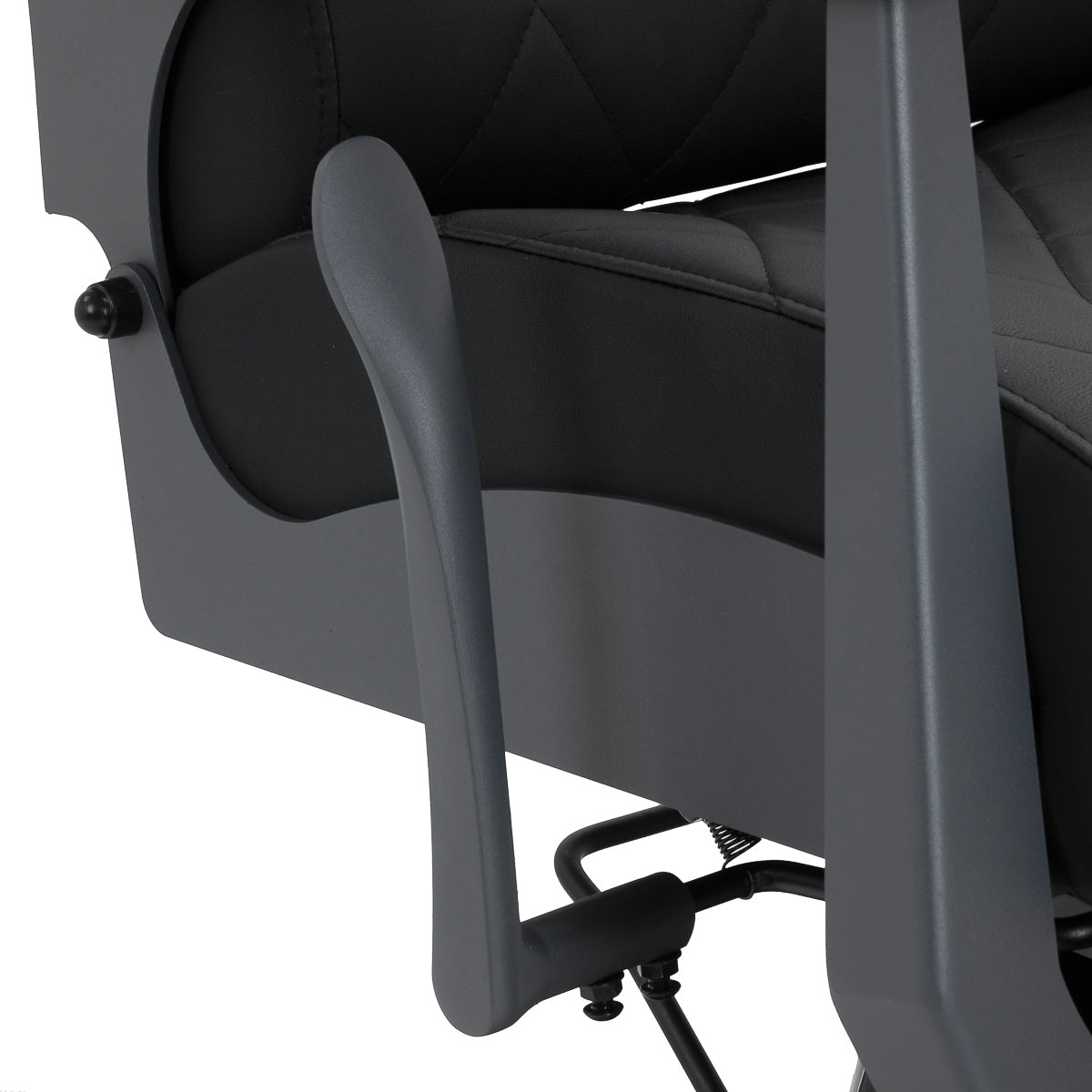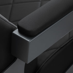 A stabil szerkezet biztonságot és hosszú távú tartósságot biztosít. A deformációnak ellenálló habbal töltött ülés és a puha, szintetikus bőrből készült kárpitozás tartósságot és kényelmet biztosít. A nedvességálló anyagok nemcsak tartósak, hanem könnyen tisztíthatók is. A fekete kárpitozás a grafit kerettel kombinálva modern és professzionális megjelenést kölcsönöz a széknek, míg minimalista stílusa lehetővé teszi, hogy bármely borbélyszalon dekorációjába illeszkedjen.