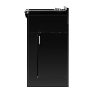 Az oldalsó ajtó könnyű hozzáférést biztosít a szereléshez, és lehetővé teszi a legszükségesebb termékek diszkrét tárolását. A vízcsatlakozáshoz kialakított hátsó nyílás kényelmes és esztétikus csatlakoztatást tesz lehetővé, miközben elrejti a csöveket és a lefolyót, ami elősegíti a rend fenntartását és az állomás professzionális megjelenését. A bútor kompakt formája ideálissá teszi mind a nagy szalonok, mind a kisebb terek számára.