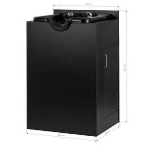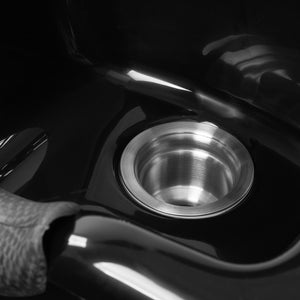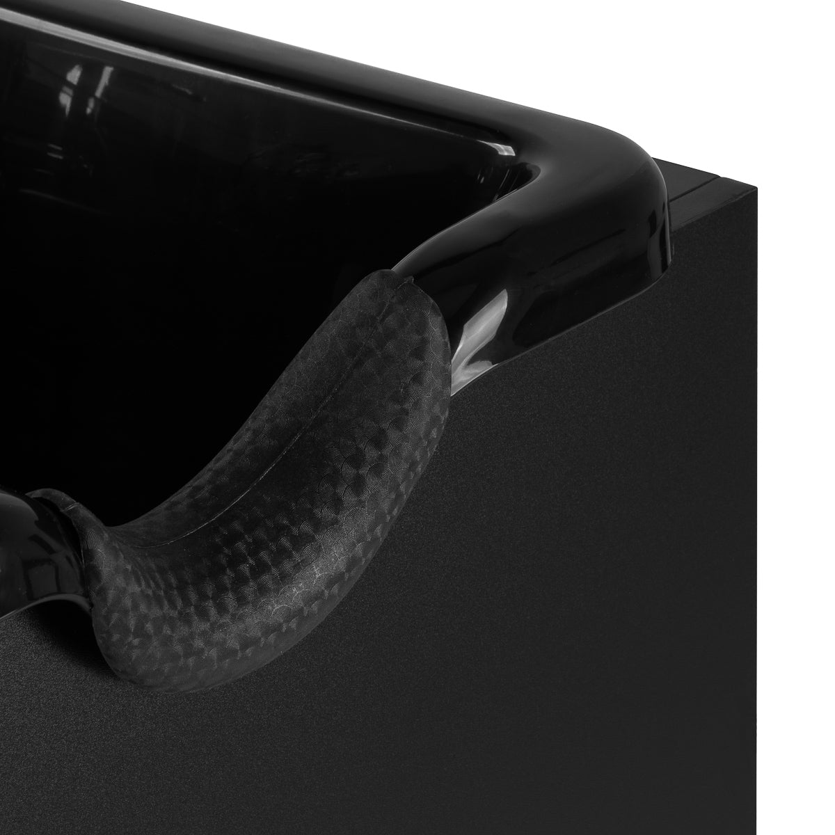 A mély fekete tál tartós műanyagból készült, ami ellenállóvá teszi a sérülésekkel szemben és könnyen tisztán tartható. Átgondolt kialakítása hatékonyan csökkenti a víz és a készítmények fröccsenését a mosás során. Az ergonomikus forma és a szilikon borítású profilozott gallér kényelmes fejpozíciót biztosít az ügyfélnek. A zuhanyfej praktikus helye segíti az állomás jobb szervezését, a szűrővel ellátott dugó pedig megkönnyíti a vízáramlás szabályozását, valamint a tisztaság és a higiénia fenntartását.