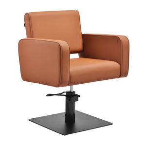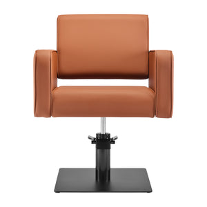 A Gabbiano Bilbao fodrászszék ötvözi a minimalista kialakítást a funkcionalitással és a mindennapi kényelemmel. A finoman lekerekített vonalak könnyed és modern érzetet kölcsönöznek neki, míg a stabil, matt fekete négyzet alakú alap kiemeli stílusos megjelenését. A puha párnázás a kellemes tapintású, barna árnyalatú szintetikus bőrrel kombinálva kényelmet biztosít még a hosszú kezelések során is. A gondosan kiválasztott anyagok tartósságot, nedvességállóságot és könnyű tisztíthatóságot biztosítanak. A szék kiegészíti mind a modern, mind a klasszikus belső tereket, professzionális jelleget kölcsönözve a szalonnak.