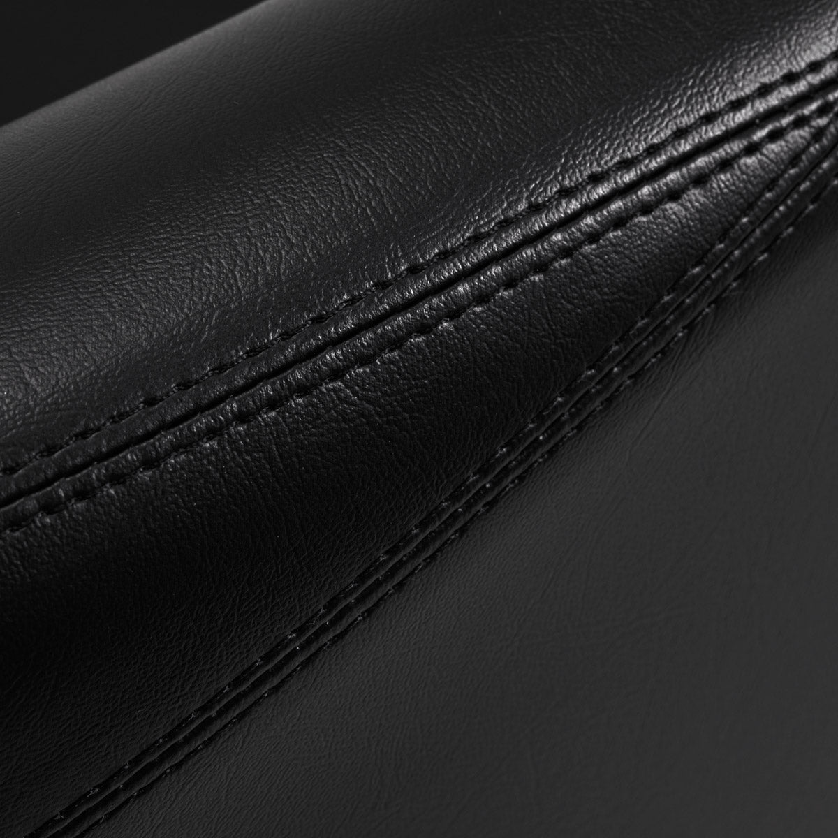 A szék habbal van töltve, amely tartós és nem deformálódik, biztosítva a kényelmes használatot hosszú ideig. A kárpitozás kellemes tapintású műbőrből készült, jellegzetes textúrával. Az ilyen anyag használatának köszönhetően a berendezés ellenáll a nedvességnek, tartós és könnyen tisztítható. A fekete árnyalatú borítás és az ezüst tónusú díszítőelemek időtlen eleganciát kölcsönöznek neki. Jellegzetes klasszikus kivitele miatt szinte bármilyen térben jól mutat.