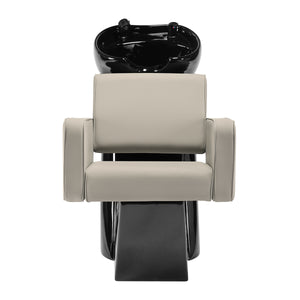 A fekete árnyalatú mély kerámia tál minimalizálja a víz és a kozmetikumok fröccsenését a kezelések során. Az állítható tál szög lehetővé teszi a pontos beállítást az ügyfél igényeihez. Tartós anyagból készült, ellenáll az elszíneződésnek, a karcolásoknak és a vegyszereknek, sima felülete pedig megkönnyíti a tisztán tartást. Az ergonómikusan profilozott gallér kényelmes fejtámaszt biztosít, míg a fekete műanyag borítás megszünteti a hideg érzetét a kerámia érintésekor.