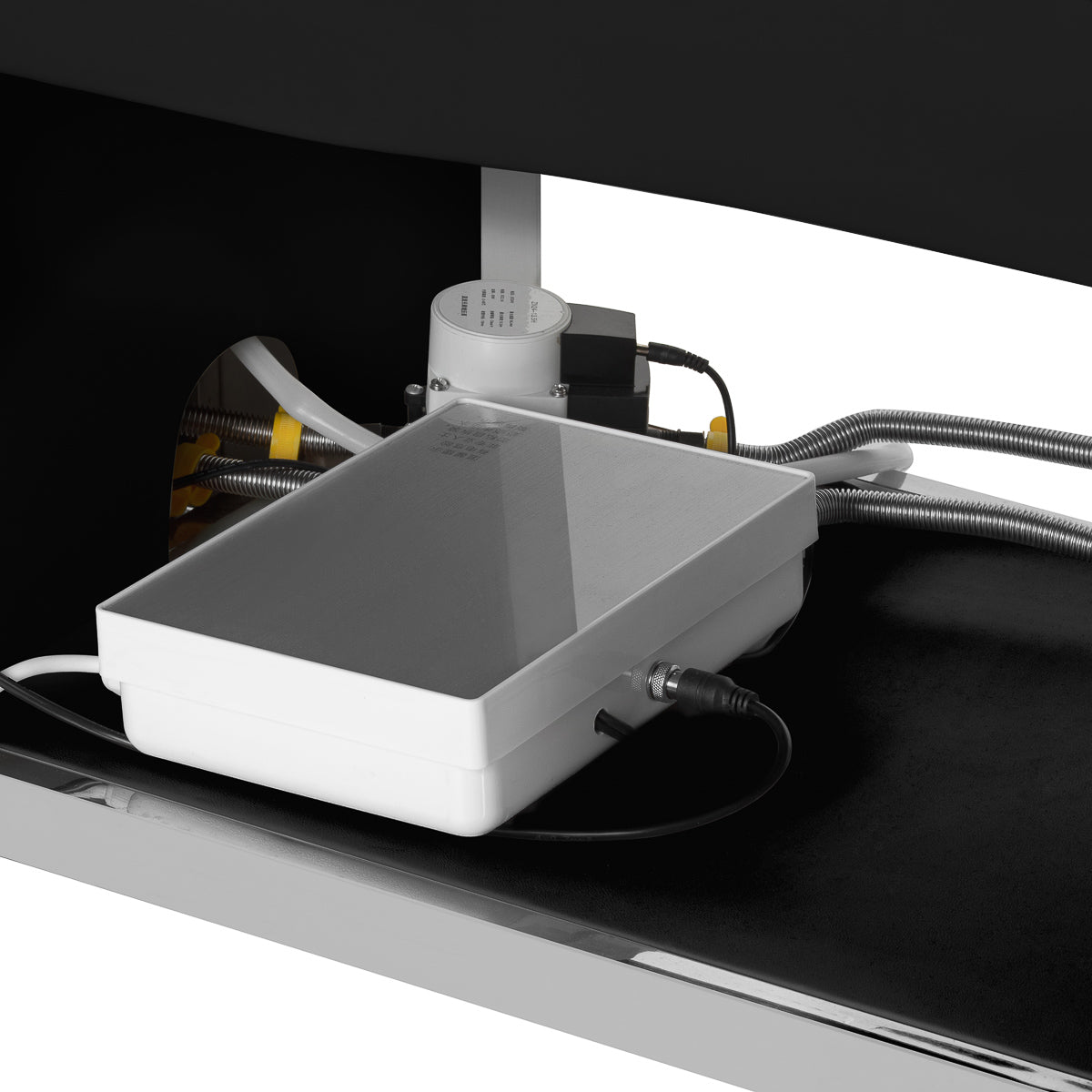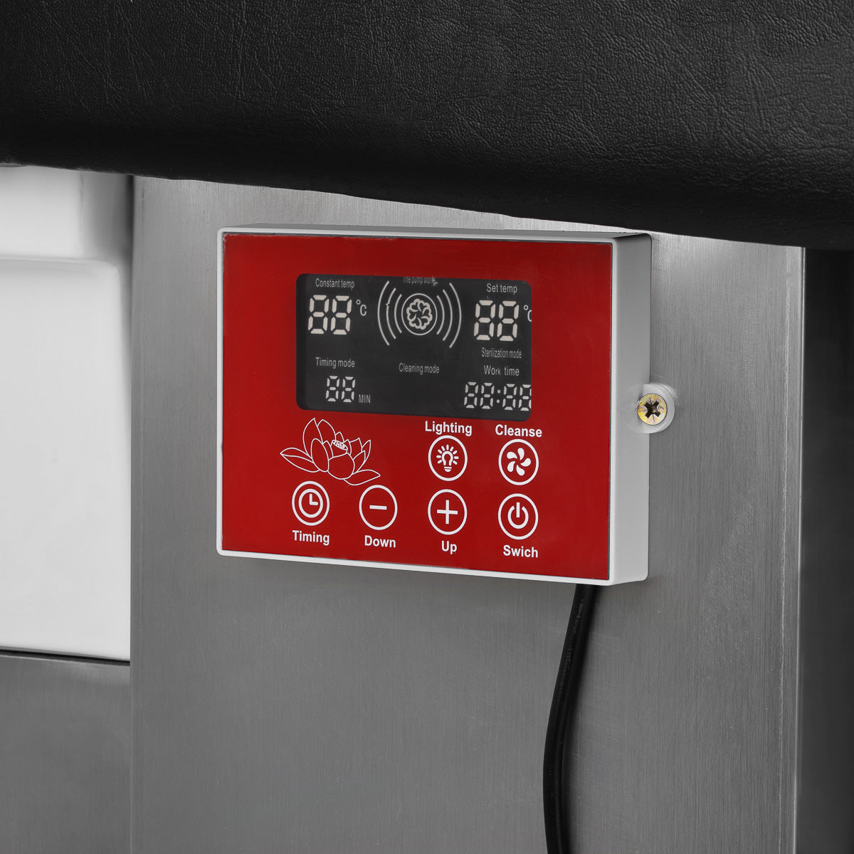 Az intuitív érintőpanel teljes ellenőrzést biztosít a mosóegység funkciói felett. Lehetővé teszi a működési idő és a vízhőmérséklet beállítását, valamint az aktuális értékek ellenőrzését. A beépített kijelzőnek köszönhetően bármikor ellenőrizheti, mennyi ideig működött a készülék. A panel lehetővé teszi a fényterápia funkció aktiválását is, azaz a tál megvilágítását, ami a relaxáció és a luxus hangulatát teremti meg. Ezenkívül a gőzterápiás eszköz távirányítóval van felszerelve, amely lehetővé teszi a kényelmes távoli működtetést.