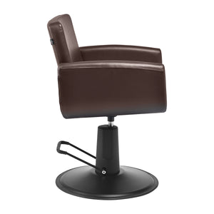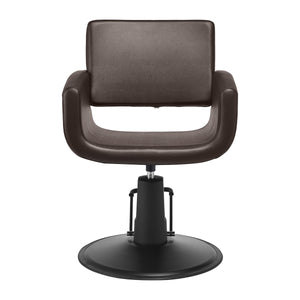 A Gabbiano Mataro fodrászszék ötvözi a modern egyszerűséget a funkcionalitással. Finoman lekerekített vonalai könnyedséget kölcsönöznek neki, míg a stabil, kerek, matt fekete alap kiemeli professzionális megjelenését. A barna árnyalatú, puha tapintású műbőrrel bevont ülés kényelmet biztosít még a hosszú kezelések során is. A gondosan kiválasztott anyagok tartósságot, nedvességállóságot és könnyű tisztíthatóságot biztosítanak. A szék tökéletesen illeszkedik mind a modern, mind a klasszikus belső terekbe, kiemelve a szalon stílusát és karakterét.