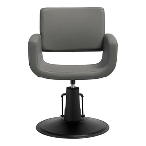 A Gabbiano Mataro fodrászszék ötvözi a modern egyszerűséget a funkcionalitással. Finoman lekerekített vonalai könnyedséget kölcsönöznek neki, míg a stabil, matt fekete kerek talp hangsúlyozza professzionális megjelenését. A szürke árnyalatú, puha tapintású szintetikus bőrrel bevont ülés kényelmet biztosít még hosszú kezelések során is. A gondosan kiválasztott anyagok biztosítják a tartósságot, a nedvességállóságot és a könnyű tisztíthatóságot. A szék tökéletesen illeszkedik mind a modern, mind a klasszikus belső terekhez, kiemelve a szalon stílusát és karakterét.