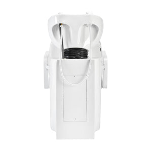 A fehér kerámia mosdókagyló megfelelő mélysége megakadályozza a víz vagy a kezelések során használt termékek túlzott fröccsenését. Ez lehetővé teszi a szolgáltatások széles skálájának kényelmes és hatékony elvégzését. A kagyló dőlésszöge állítható, ami megkönnyíti az egyéni igényekhez való igazítást. A felhasznált anyagok magas minősége miatt a mosdókagyló tartós, ellenáll az elszíneződésnek és a karcolásoknak, és nagyon könnyen tisztítható. A megfelelően profilozott nyakrész és a döntött háttámla támaszt és kényelmet biztosít a hajmosás során, és a kényelmes fekete műanyag borításnak köszönhetően az ügyfél nem érzi a hideg kerámia felület kellemetlenségét.