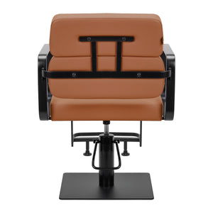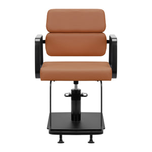 A szék teljes forgási mechanizmusa hatékonyabbá és kényelmesebbé teszi a fodrász munkáját. A szilárd, lapos, négyzet alakú alap stabilitást garantál használat közben. A matt felületű, sima felület elegáns megjelenést kölcsönöz az elemnek, és könnyen tisztán tartható. A habbal töltött kényelmes ülés magas használati kényelmet biztosít, még a több órás kezelések során is. A geometrikus, fém kartámaszok lehetővé teszik az ügyfél vállainak helyes elhelyezését – ez azt jelenti, hogy nem temeti a fejét a vállába, vagy nem görnyed – ami sokkal könnyebbé teszi a precíz kezelések elvégzését, beleértve a hajvágásokat is. Az ehhez a modellhez dedikált stílusos lábtartó stabil támaszt nyújt a felhasználó lábainak.