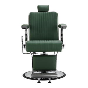 Sturdy base construction ensures stability and high comfort. The seat is filled with deformation-resistant foam and upholstered with soft, matt synthetic leather, combining durability with comfort. The materials used for the finish are moisture-resistant, durable and easy to clean, making the chair perfect for everyday use. Stylish stitching and upholstery in shades of green give it a unique character, blending perfectly with the décor of modern barbershops.