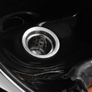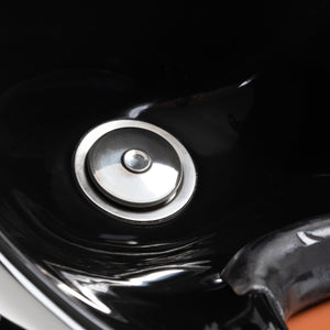 The deep ceramic bowl in shades of black minimises splashing of water and cosmetics during treatments. The adjustable angle of the bowl allows for precise adjustment to the customer's needs. Made of durable material, it is resistant to discolouration, scratches and chemicals, and its smooth surface makes it easy to keep clean. The ergonomically contoured collar provides comfortable head support, and the black plastic cover eliminates the feeling of cold when in contact with the ceramic.