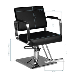 modern hajrendszer szék a hair system-től. elegáns és nagyon kényelmes. a szilárd, krómozott alap garantálja az ülés stabilitását. kárpitozás kiváló minőségű fekete ökobőrből. a szék fel és le állítható