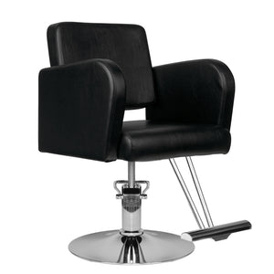 modern hajrendszer szék a hair system-től. elegáns és nagyon kényelmes. a tömör, krómozott alap garantálja az ülés stabilitását. kárpitozás kiváló minőségű fekete ökobőrből. az ülés fel-le állítható.