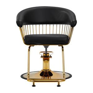 Az elegáns Hair System Lile fodrászszék praktikus hidraulikus emelővel egy funkcionális bútordarab, amely minden fodrászszalon díszévé válik. A klasszikus színek, az érdekes dizájn és az arany árnyalatú dekoratív elemek ízléses megjelenést kölcsönöznek neki. A magas funkcionalitás kényelmet biztosít mind a fodrászok, mind a felhasználók számára.
