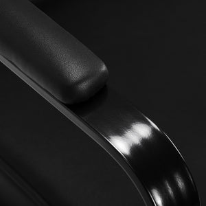 The sturdy construction and black synthetic leather upholstery ensure the chair is moisture-resistant, durable and robust. The round base in the same shade guarantees stability and safety of use. The minimalist design makes the armchair a perfect match for various styles of hairdressing salon interiors, introducing an elegant and modern touch.