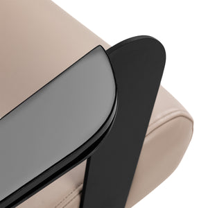 The seat is filled with durable, deformation-resistant foam and covered with synthetic leather, ensuring comfort and long life. The materials are moisture-resistant, easy to clean and suitable for intensive use in salon conditions. The beige upholstery gives the chair an elegant, timeless character that harmonises with the black structural elements. The modern design makes the Hair System Jet hairdressing chair an aesthetic and functional piece of equipment for professional hairdressing salons.
