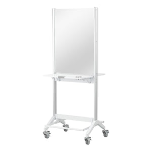A praktikus, 90 cm magasságban elhelyezett összecsukható polc az MI-03 konzol egyik fő előnye, amely helyet takarít meg, miközben funkcionális tárolóhelyet kínál. Ezenkívül a kétoldalas kialakítás és a zárható görgők mobilitást és könnyű mozgathatóságot biztosítanak a konzolnak. A polcon lévő lyukak hajszárító tartóként szolgálnak, így még praktikusabbá és a fodrász szakemberek igényeire szabottá válik.