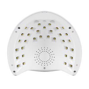 36 precízen elhelyezett LED biztosítja a gélek és hibrid lakkok tökéletes kötését, kiküszöbölve az úgynevezett holt zóna kockázatát. A zárt kialakítás, amelyet fülkének neveznek, lehetővé teszi a köröm design pontosabb és gyorsabb kötését. A Dual LED technológiának köszönhetően a diódák két hullámhosszon bocsátanak ki fényt, csökkentve a szem fáradását és kiterjesztve az eszköz hatótávolságát. A tükrözött alj egyenletesen veri vissza a fényt, ami felgyorsítja és optimalizálja a kötési folyamatot a teljes körömfelületen. Ezek a megoldások megkönnyítik még a legigényesebb termékek megfelelő kötését is, lehetővé téve a körömlemez nehezebben elérhető területeinek elérését is.