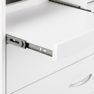 A masszív lábápoló egységet úgy tervezték, hogy megkönnyítse a szakember munkáját. Három tágas fiók befogad minden szükséges kiegészítőt, eszközt és terméket. Jelentős előny a kihúzható polc, ahová a lábápoló munkájához szükséges eszközöket, például sterilizátort vagy csiszológépet helyezhet. Kiváló hely lesz az edényeknek vagy készítményeknek is, amelyeket érdemes folyamatosan kéznél tartani. A bútor kerekekkel van felszerelve, ami javítja a munkát és az áthelyezést. Lehetővé teszik a könnyű szállítást a helyiségek között. A TUBE tartó lehetővé teszi a lámpa közvetlen rögzítését az asztallaphoz bárhol. A segéd tartós anyagokból készült, könnyen tisztítható, és jelentősen javítja a speciális szolgáltatások teljesítményét.