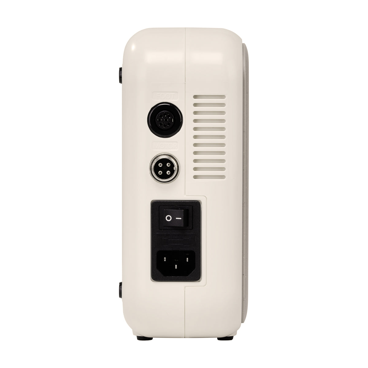 A körömcsiszoló lábpedálos vezérléssel van felszerelve, amely lehetővé teszi a forgási sebesség precíz és kényelmes szabályozását kéz használata nélkül. Ennek a megoldásnak köszönhetően a munka ergonomikusabbá és gördülékenyebbé válik, ami lehetővé teszi a teljes koncentrációt az elvégzett kezelésekre. A lábpedálos vezérlés ideális megoldás azoknak a szakembereknek, akik értékelik a kényelmet és a hatékonyságot.