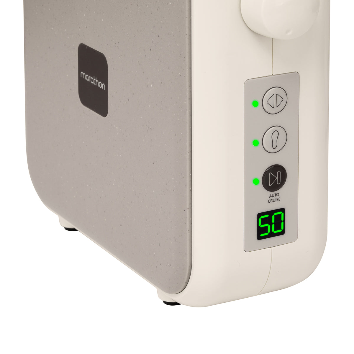 A Saeyang Marathon MULTI800 körömcsiszoló ötvözi a funkcionalitást az esztétikával, megfelelve a legigényesebb szakemberek elvárásainak is. A futurisztikus ház bézs és barna árnyalatokban, finom pöttyös felülettel gazdagítva, szemet gyönyörködtető. A lekerekített élek és a matt felület professzionális megjelenést kölcsönöz a körömcsiszolónak, tökéletesen illeszkedve bármely szépségszalonba. A körömcsiszoló kiváló minőségű anyagokból készült, amelyek tartósak és könnyen tisztíthatók, biztosítva a hosszú élettartamot és a kényelmes használatot. A kiegészítő gumírozott lábak garantálják a készülék stabilitását és védik a felületeket a karcolásoktól. Funkcionalitásának és esztétikájának köszönhetően a körömcsiszoló nemcsak a célját szolgálja, hanem stílusos berendezési tárgyá is válik, hangsúlyozva a belső terek modern stílusát.