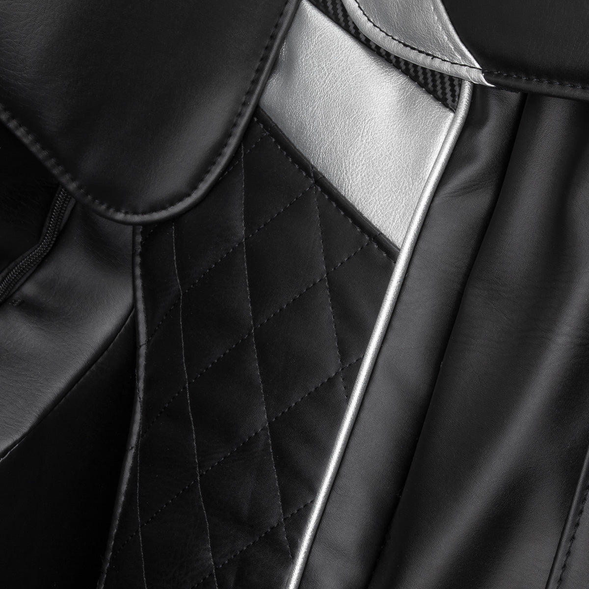 A puha, kellemes tapintású műbőr fekete árnyalatokban magas használati kényelmet és könnyű karbantartást biztosít. Az anyag esztétikus, ellenáll a nedvességnek és praktikus a mindennapi használatban. Az ezüst színű külső részletek, a fekete árnyalatú strukturált felülettel kombinálva modern, stílusos karaktert kölcsönöznek a fotelnek. A kompakt forma és a visszafogott színek miatt a modell tökéletesen illeszkedik a különböző belső terekbe. A Sakura Prime 101 ideális ajánlat azok számára, akik mindennapi pihenést keresnek – mind egy intenzív nap után, mind fokozott fizikai megterhelés után.