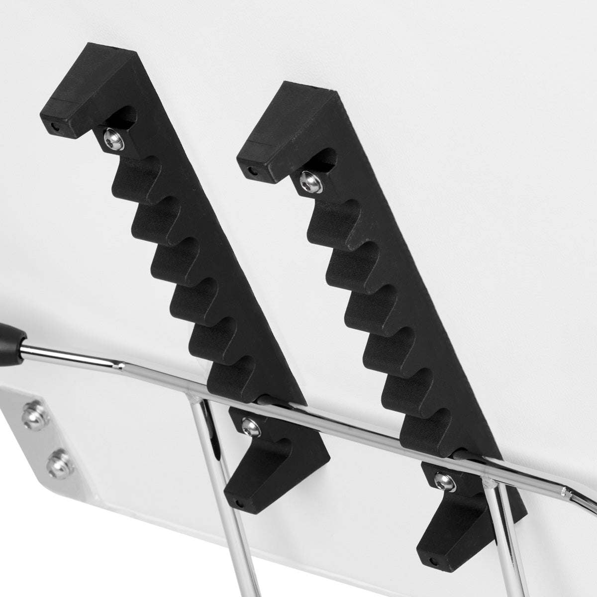 A lábtartó és a háttámla elhelyezkedési szögének fokozatos beállítását egy speciális mechanizmus biztosítja. Kézi kar segítségével simán beállítható a szék pozicionálása. Ez lehetővé teszi az optimális beállítást az egyéni igényekhez, a megfelelő és kényelmes kezelések elvégzéséhez és a magas használati kényelemhez. A szék fekvő helyzetig kihajtható, ami jelentősen növeli a funkcionalitását. Ez lehetővé teszi különböző típusú kezelések szabad elvégzését többek között a kozmetika, a fizioterápia vagy a tetoválás területén.