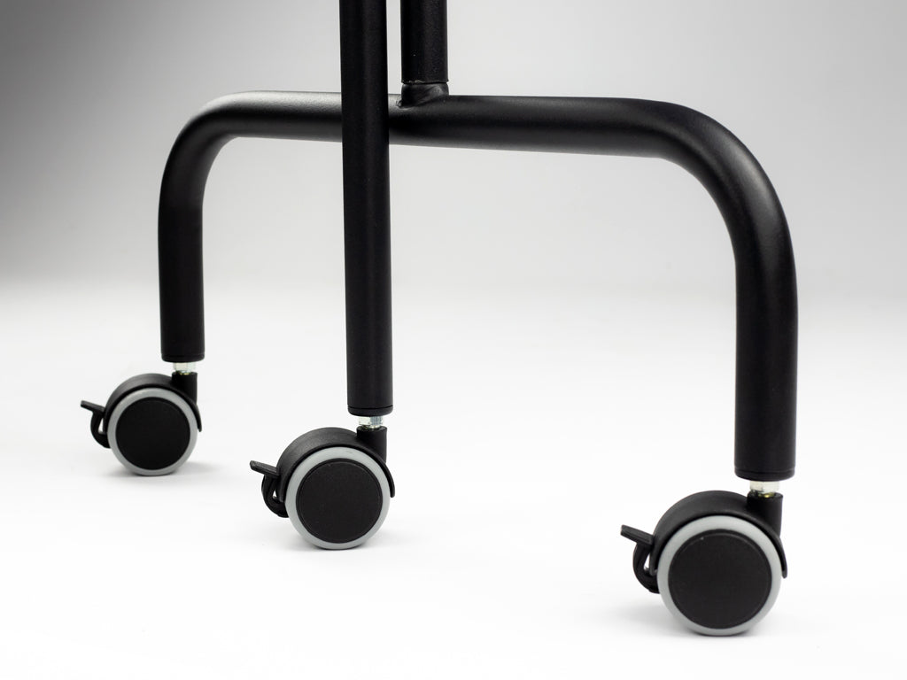 Standard moduláris paraván acélból, tartós fekete matt porfestékkel bevonva. A fékekkel ellátott speciális kerekek kényelmes mozgatást és stabilizálást tesznek lehetővé, még csúszós felületeken is. A moduláris opciónak köszönhetően további szárnyakkal bővíthető. Ideális alapvető felszerelésként bármely fizioterápiás vagy masszázs rendelő számára.