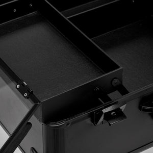 Egy funkcionális kozmetikai doboz kényelmes, hordozható, kerekes bőrönd formájában. Tökéletes megoldás mobil kozmetikusok vagy sminkesek számára. Nagyon tágas. Négy teleszkópos lábbal rendelkezik, melyeknek köszönhetően megfelelően beállíthatjuk az állomás magasságát. Világítás a tükör oldalain. A bőrönd belsejében további négy összecsukható polc található apró kiegészítők számára. Fekete színű.