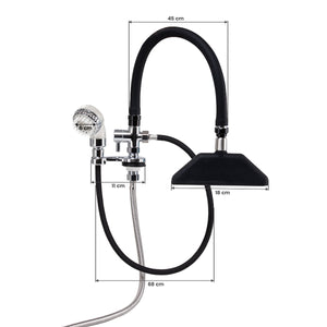 A fodrászmosókhoz tervezett vízesés csaptelep keverővel a professzionális szalonfelszerelés elengedhetetlen része. Megkönnyíti a víz kényelmes csatlakoztatását a mosóhoz, és kényelmet biztosít mind a fodrásznak, mind az ügyfélnek. A mellékelt acélfonatos csatlakozócsöveknek köszönhetően a csaptelep nagy tartóssággal és kopásállósággal rendelkezik.