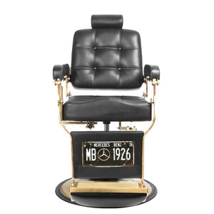 The retro-style barber chair impresses with its elegant design inspired by the classic automotive industry. The solid, round base ensures stability and comfort of use. The seat filled with deformation-resistant foam and upholstered with pleasant-to-touch synthetic leather guarantees comfort and durability for years. The materials used also make the equipment resistant to moisture and easy to clean. The quilted upholstery in a shade of black, made with attention to detail, emphasizes the luxurious character of the furniture. The stylized metal armrests and a frame in a shade of gold give the whole thing a unique character.