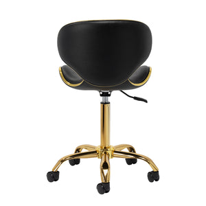 The five-star base ensures stability, even during dynamic movements or frequent position changes. Equipped with durable wheels, it provides high mobility, allowing easy movement around the salon or office. The synthetic leather upholstery in shades of black is not only durable but also easy to clean. Aesthetic gold elements add a luxurious touch and catch the eye. The unique combination of elegance and comfort makes this stool an indispensable tool for any professional.