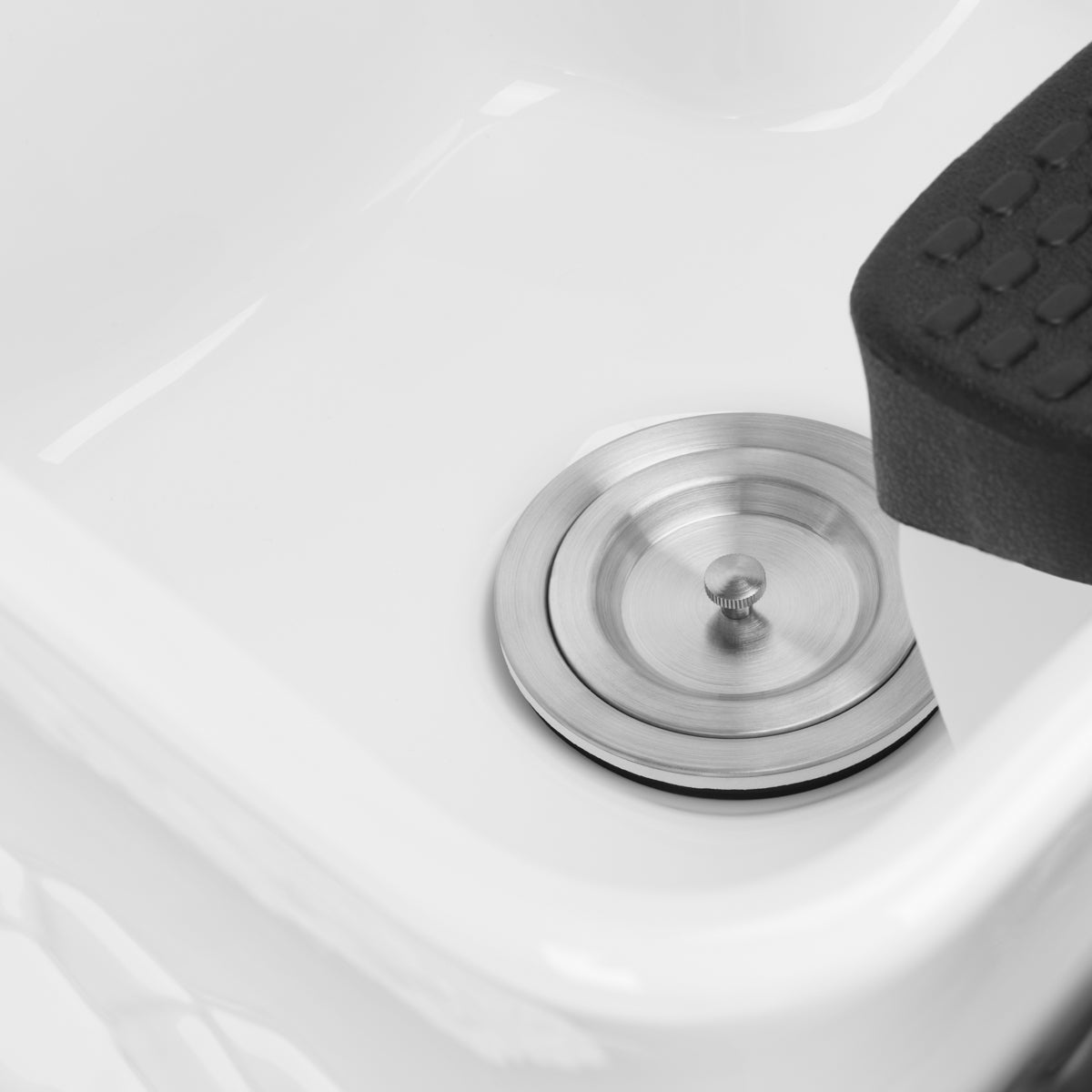 The modern Gabbiano hairdressing car wash combines functionality with Italian elegance. The car wash is made of the highest quality materials and perfectly finished. We know how important the client's comfort is during treatments, which is why the special design provides the client with a solid head support while washing. The soft and extremely comfortable seat is covered with high-quality gray eco-leather. The car wash has a white ceramic bowl and golden armrests. The perfect piece of furniture for modern interiors.
