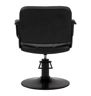 The elegant form combines modern style with durability and a stable construction, creating aesthetic and functional hairdressing salon furniture. The black synthetic leather upholstery is moisture-resistant and easy to keep clean, ensuring long-lasting, comfortable use. The round base ensures stability and durability during daily use, whilst the carefully crafted details highlight the quality of the model. The versatile, minimalist colour scheme, combined with decorative stitching, means the chair fits perfectly into a variety of salon designs, adding an elegant touch to the interior.