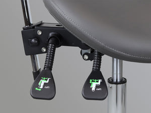 comfortable contoured saddle seat with front-to-back adjustment
