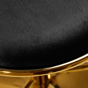 A kellemes tapintású, bársony kárpitozás fekete árnyalatokban egyedi karaktert kölcsönöz a zsámolynak, és az esztétikusan összefont anyag a háttámlán kiemeli a bútor egyedi megjelenését. A kivitel miatt a bútordarab vonzza a tekintetet. Az arany árnyalatú keret eleganciát és presztízst kölcsönöz, tökéletesen illeszkedve a bársonyhoz.