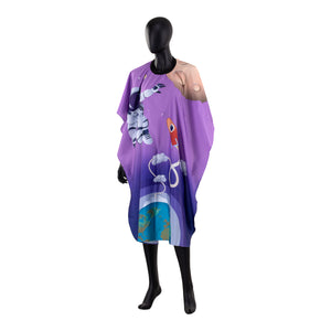 A köpeny vízálló anyagból készült, amely könnyen tisztán tartható és nedvességálló, megvédi a ruhákat a nedvességtől. Az állítható, kényelmes rögzítés lehetővé teszi a tökéletes illeszkedést. A méretek és az egyszerű összehajtás megkönnyítik a tárolást. Ezenkívül a vidám, kozmikus elemekkel díszített nyomat a köpenyt nemcsak praktikus kiegészítővé, hanem érdekes vonzerővé is teszi, amely kellemesebbé teszi a fodrászlátogatást.