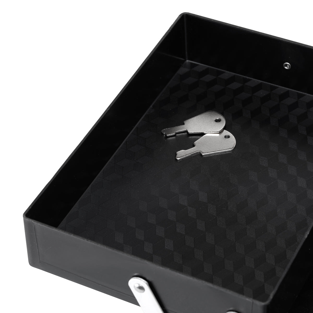 Az elegáns 40-es tok ötvözi a funkcionalitást és a stílust, kényelmes rendszerezést, biztonságos tárolást és gyors hozzáférést biztosítva a legfontosabb eszközökhöz. Tökéletesen működik a mindennapi használatban, különösen a mobil stylistok számára. A kihúzható polcokkal ellátott tágas belső tér lehetővé teszi a kiegészítők rendezett elrendezését, míg a nagy rekeszben elfér egy marógép, kozmetikumok vagy más szükséges tárgyak.