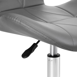 A króm árnyalatú ötágú talp gumírozott kerekekkel van felszerelve, amelyek jelentős mobilitást biztosítanak, és lehetővé teszik a bútor szabad mozgását a munkahelyen. Az ülés kellemes tapintású műbőrrel van kárpitozva, elegáns szürke árnyalatban. Az anyag tartósságot, nedvességállóságot és könnyű tisztíthatóságot garantál. A dizájnt stílusos varrás egészíti ki, kiemelve a modern megjelenést.