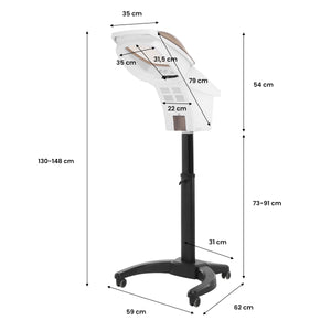 A fehér műanyag ház tartóssá és könnyen tisztán tarthatóvá teszi a készüléket. A nyitható búra jelentősen javítja a termék tisztítását. Az egyszerű, kézi beállítással rendelkező állvány 18 cm-es tartományban praktikus kerekekkel ellátott alappal rendelkezik, amely lehetővé teszi a készülék könnyű mozgatását bármikor.