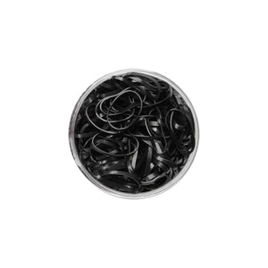 Szilikon, szagtalan gumiszalagok hajfonatokhoz, műanyag tégelybe csomagolva. A gumiszalagok feketék. A csomag körülbelül 300 darabot tartalmaz. A gumiszalagok nagyon tartósak és nagyon jól nyúlnak.